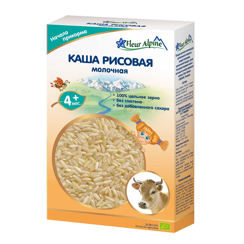 Каша молочна Fleur Alpine Рисова для дітей старше 4 місяців. Без доданого цукру. Виготовлена із високоякісного цільного зерна, призначеного для харчування дітей. Розчиняється легко, швидко і без грудочок.