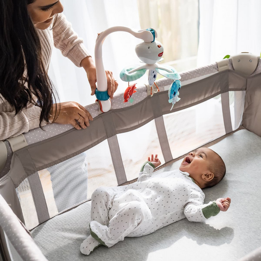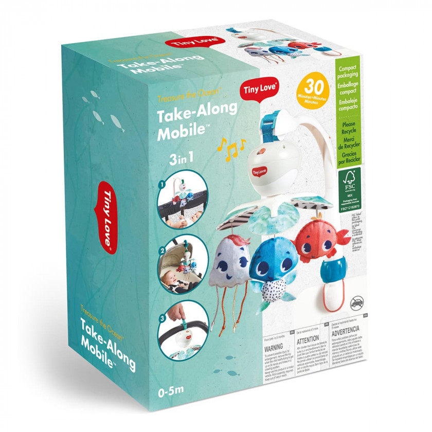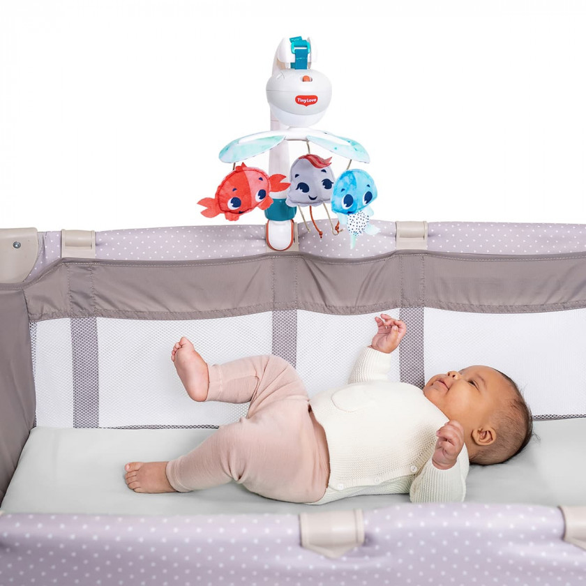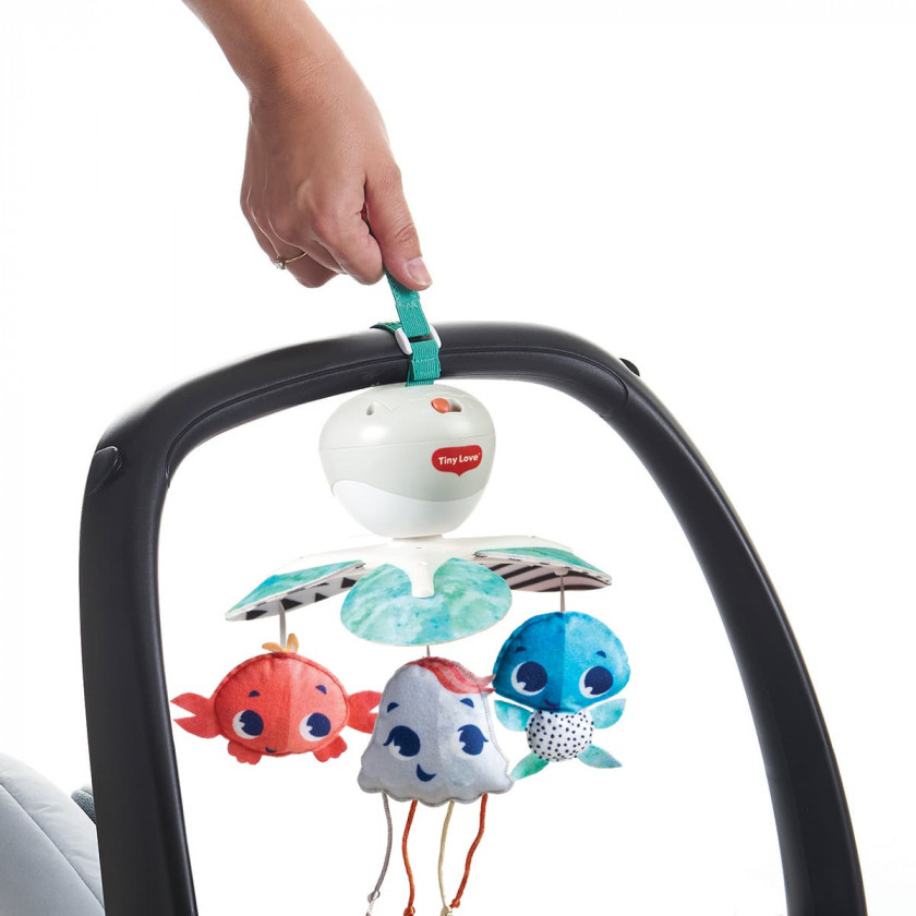Мультифункціональний мобіль 3 в 1 Tiny Love Океан розважить і заспокоїть малюка не лише вдома в ліжечку, а й на прогулянці чи подорожі. Універсальне кріплення дозволяє зафіксувати мобіль на дитячому ліжечку, колясці, стільчику, манежі та автокріслі. Мобіль зможе створити комфортну атмосферу для активного відпочинку та дихання дитини.