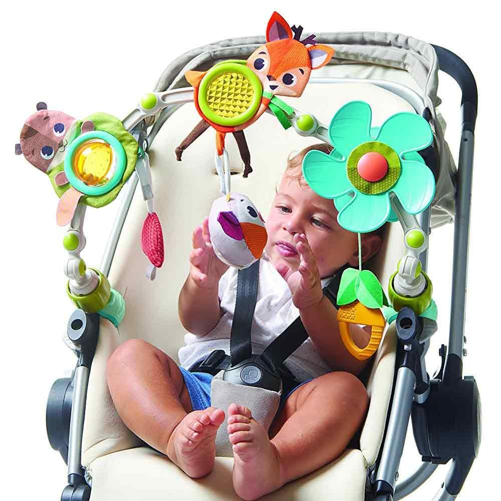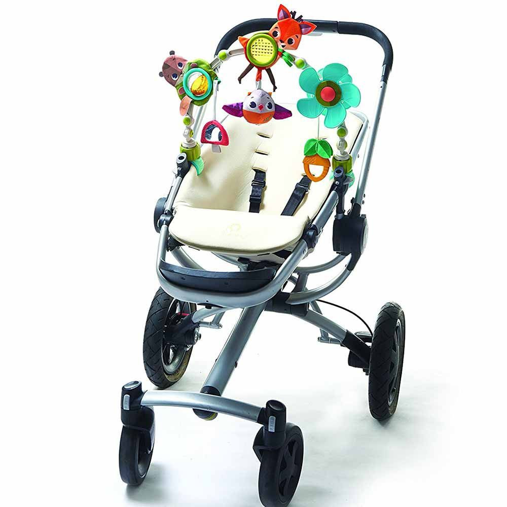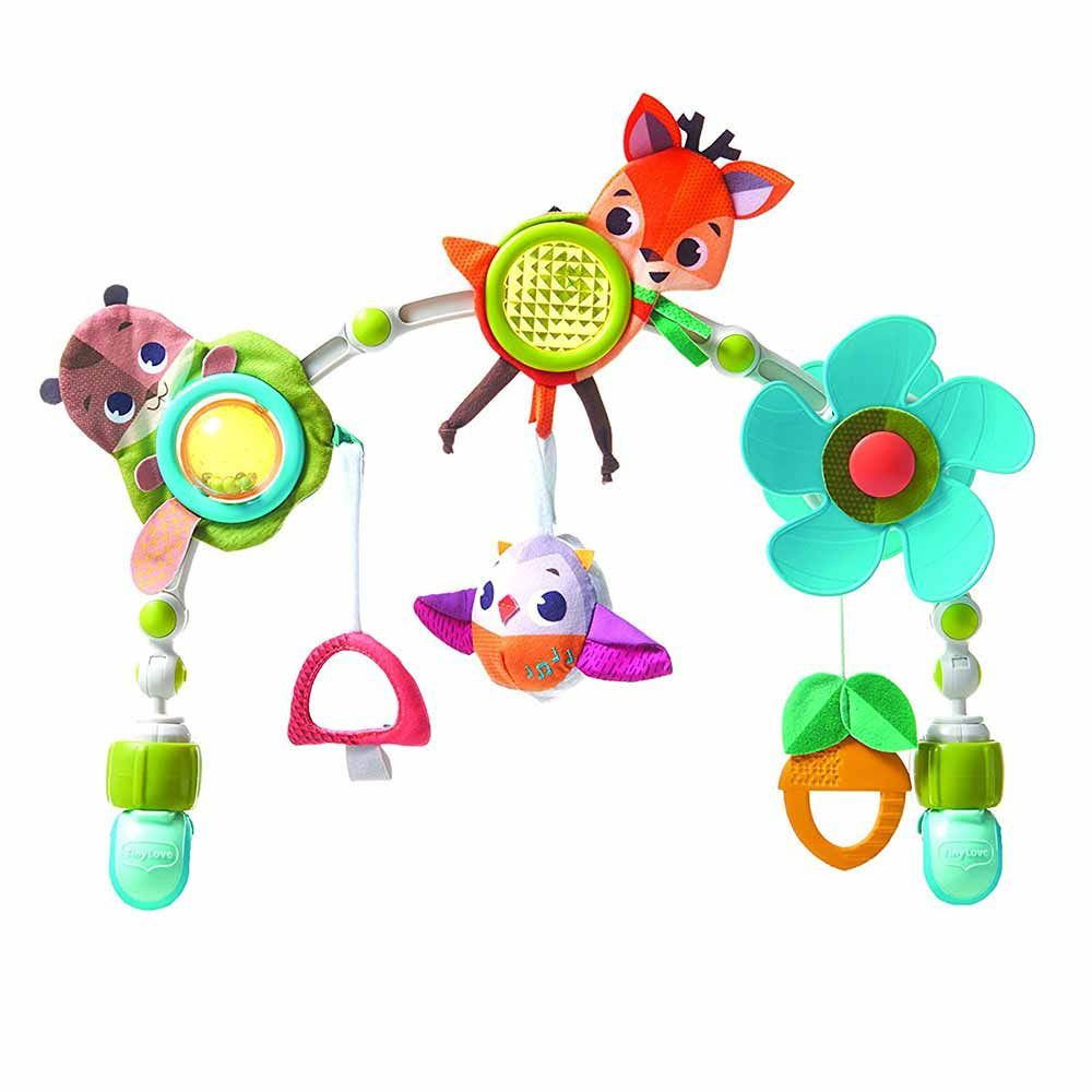 Дуга для коляски «Лісові друзі» – це новий погляд на стимулювання почуттів дитини, в процесі гри допоможе розвинути інтелект, навчити розрізняти кольори і форми, аналізувати та логічно мислити. Милий оленя, веселий бобренок і летить совеня розважать малюка. У фігурку бобренка вбудоване прозоре брязкальце з кольоровими кульками. Є і прорізувач у вигляді яскравого жолудя - прекрасний засіб прибрати у малюка неприємні відчуття під час росту зубів. Для звукової стимуляції малюка фігурка совеня може грати кілька мелодій – просто доторкнися до пташки, і пролунають веселі звуки.