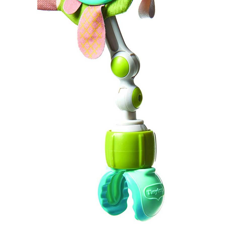 Дзеркальце, звучні іграшки, обертовий квітка – всі вони виготовлені з матеріалів з різною фактурою для розвитку тактильних відчуттів дитини. Всі деталі великі, яскраві і кольорові для залучення уваги дитини. Іграшки можна знімати з кріплень на дузі. Конструкція дуги виконана на шарнірах і дозволяє змінювати її форму і відстань від іграшок до дитини. Передбачено універсальне кріплення у вигляді захоплення для установки на візки різних конструкцій і габаритів. Виконана з ударостійкого пластику, текстилю та гіпоалергенного силікону.