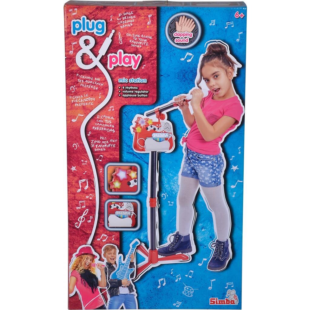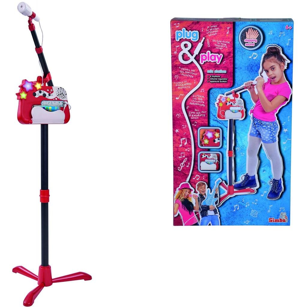 Стати зіркою легко, завдяки музичному інструменту Мікрофон зі стійкою. Компанія Simba представляє вам інструмент, який має 4 демомелодії, а мікрофон і музична панель відділяються від стійки.