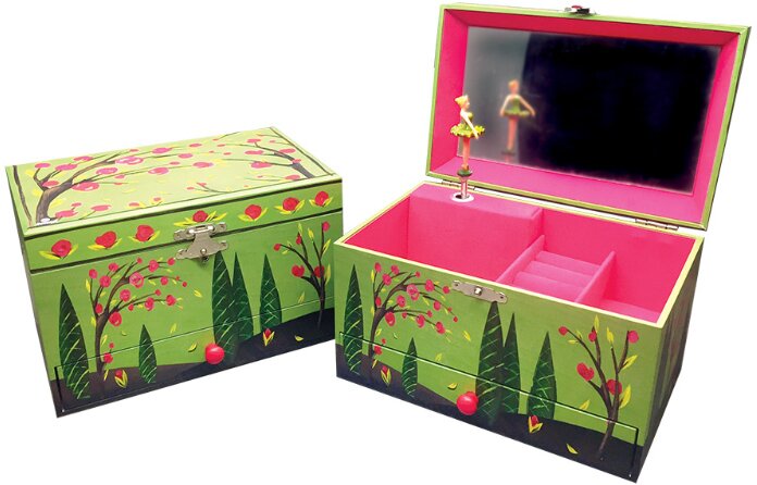 Маленька принцеса зрадіє чудовому подарунку у вигляді музичної скриньки для прикрас! Заведіть механізм, відкрий кришку та дозволь музиці перенести тебе до міфічного світу пір року! Ця скринька для скарбів є барвистою коробкою із широким дзеркалом, тримачем для каблучок і висувною шухлядкою.