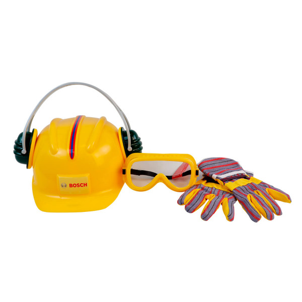 Набір аксесуарів Bosch Klein складається з захисного шолома, окулярів, навушників та рукавиць.