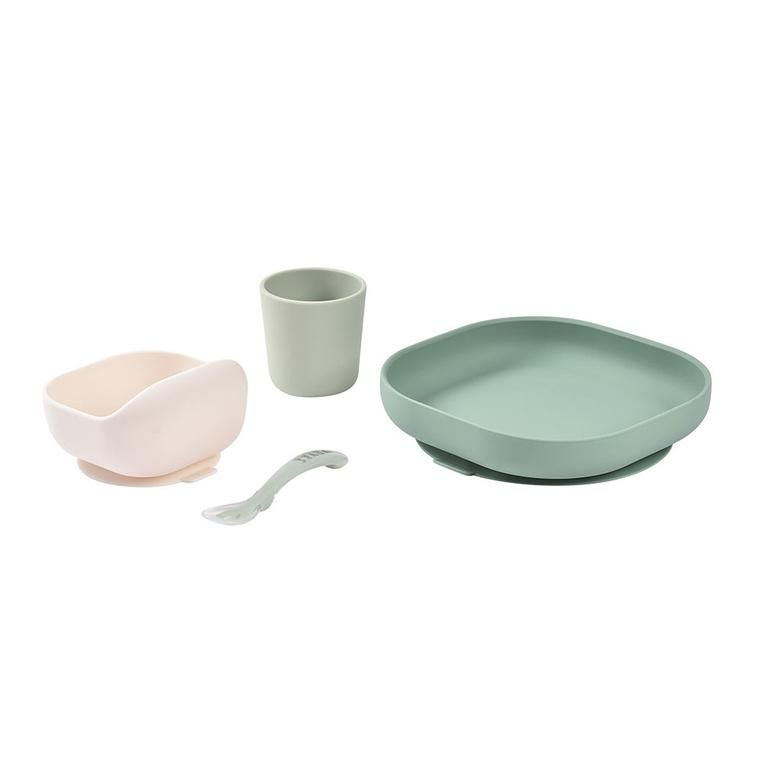 Ідеальний перший посуд для малюків старше 4-х місяців. Має ергономічну форму, виготовлений з м'якого силікону у темно-синьому, білому та рожевому кольорі. Не б'ється.