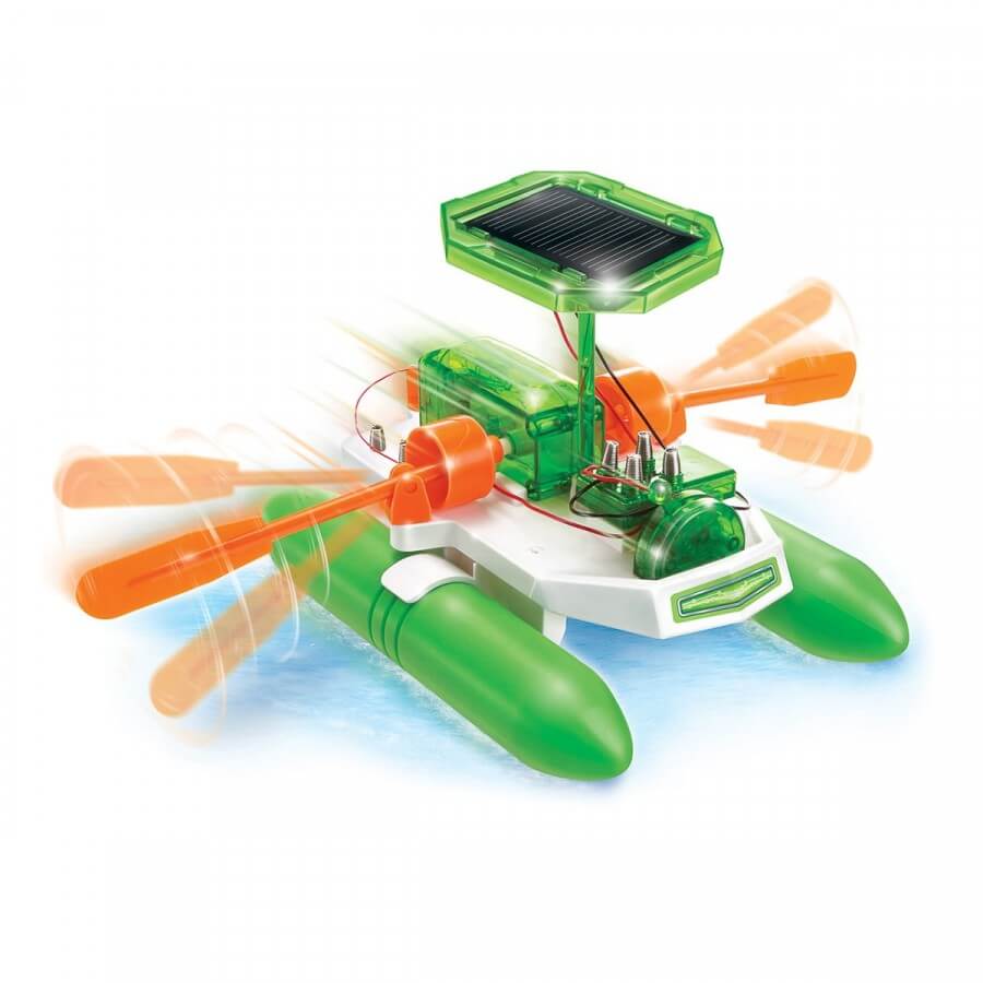 Ігровий набір для дітей Дивовижний швидкісний човен і справді дивовижний: з деталей, які складаються і розкладаються, можна скласти човен, якій буде працювати від сонячних батарей. А якщо ж світла буде недостатньо, є можливість включити звичайні батарейки.
