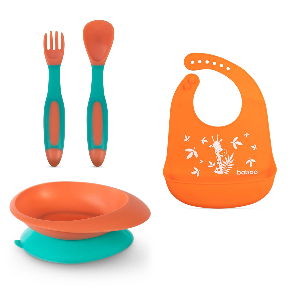 Набір столових приладів із гнучкою ручкою Baboo ідеально підходить для малюків у період навчання самостійному прийому їжі. Виделка та ложка виготовлені з високоякісного харчового пластику, не містять Бісфенол А, безпечні для ніжних ясен дитини.
