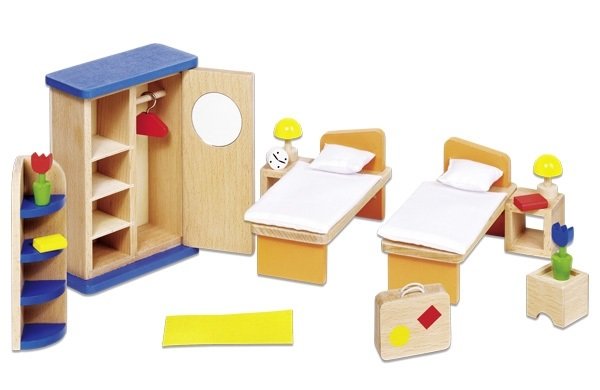 Безліч дерев'яних меблів зібрано у німецького виробника Goki. Тут є і спальні і вітальні, і ванні кімнати, і кухні, ресепшн, садові меблі і меблі для кафе. Зроблені вони до найдрібніших деталей. Екологічні, надійні і безпечні для дітей. Саме такі меблі для спальної кімнати, в наборі якої, йде постільна білизна та світильники. Рольові ігри корисні для дітей тому дуже добре забезпечити їх необхідними і безпечними речами для них. На їхньому прикладі добре вчити дітей правилам поведінки, соціальним навичкам, розвитку мовлення.