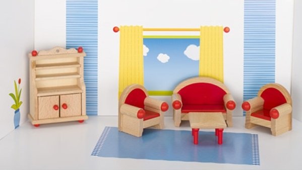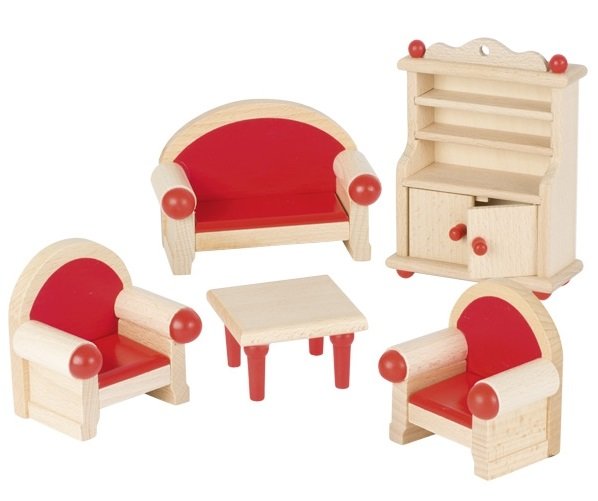 Набір меблів для вітальні від німецького бренду goki вироблений у фермерському стилі і підійде до будь-яких лялькових будиночків goki.