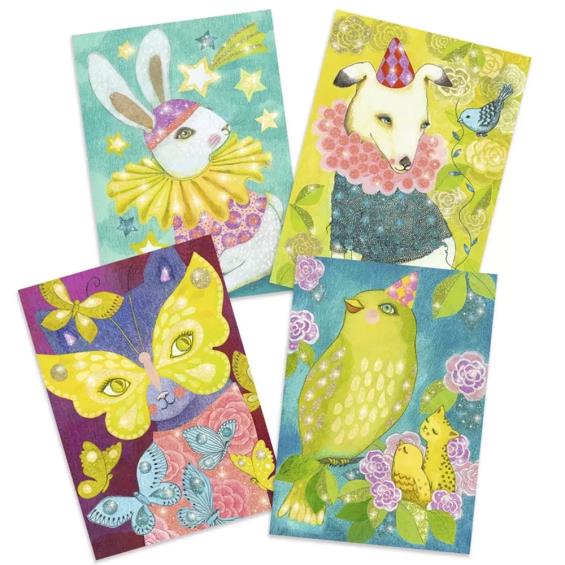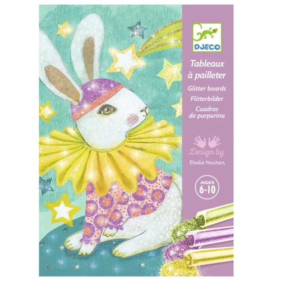 Капелюхи, маски і костюми яскраво сяють на чарівному карнавалі! Діти поміщають картинку в коробку, за допомогою спеціального інструменту знімають захисний шар з попередньо проклеїних ділянок і посипають блискітками, дотримуючись інструкції та кольорового кодування, або за власною фантазією.