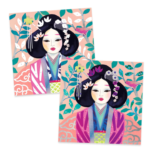 Створи сяючі шедеври за допомогою магії фольги! Просто знімай захисну плівку з карток і наклеюй фольгу, яка миттєво приклеюється, перетворюючи малюнок на блискучий витвір. Додай стрази для фінального блиску і святкового настрою.