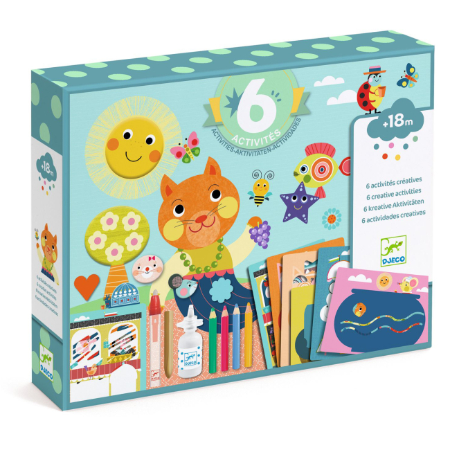 Набір для творчості DJECO Котик та його друзі допоможе малюку створити чудові аплікації за допомогою барвистих деталей. Маленькі художники зможуть оживити милих котиків та їхніх друзів, розвиваючи свою уяву та дрібну моторику. Усі деталі зручні для маленьких ручок, що дозволяє дитині самостійно створювати свої перші аплікації. Набір допоможе вашій дитині розвивати дрібну моторику, творчі здібності та уяву, а також навчитися терпінню та концентрації. Рекомендовано для дітей від 18-ти місяців.