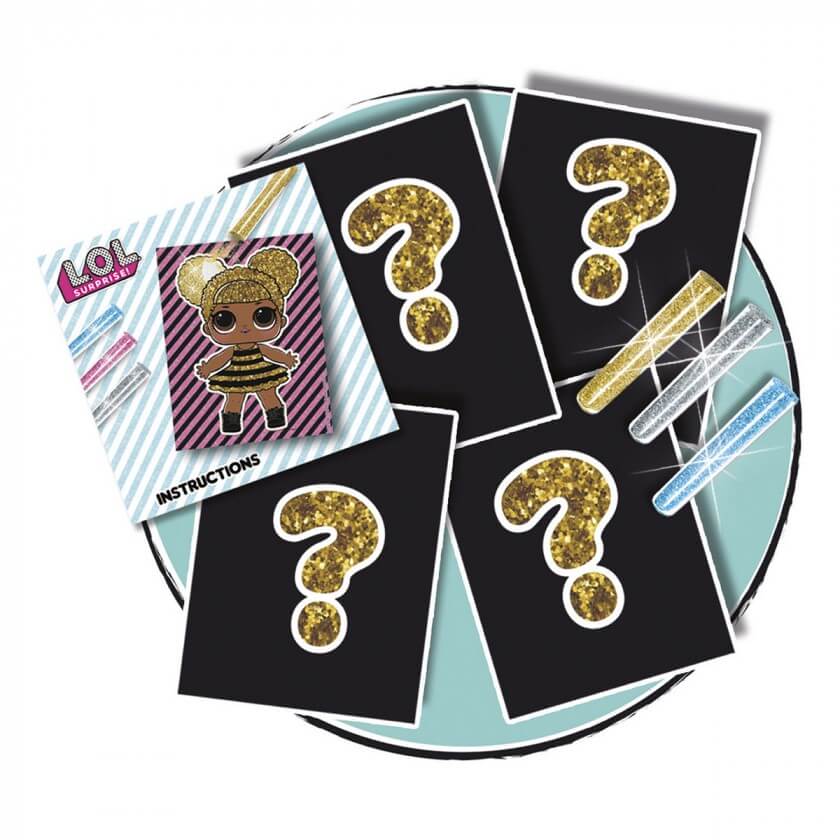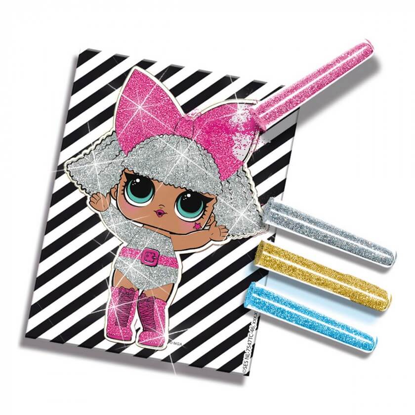 Всі пупси L.O.L Surprise! взахваті від блиску. Набір для творчості SES Creative «Блискучий сюрприз» дозволить прикрашати чарівних лялечок блискітками різних кольорів, просто знявши клейкий шар з ділянок на картках.