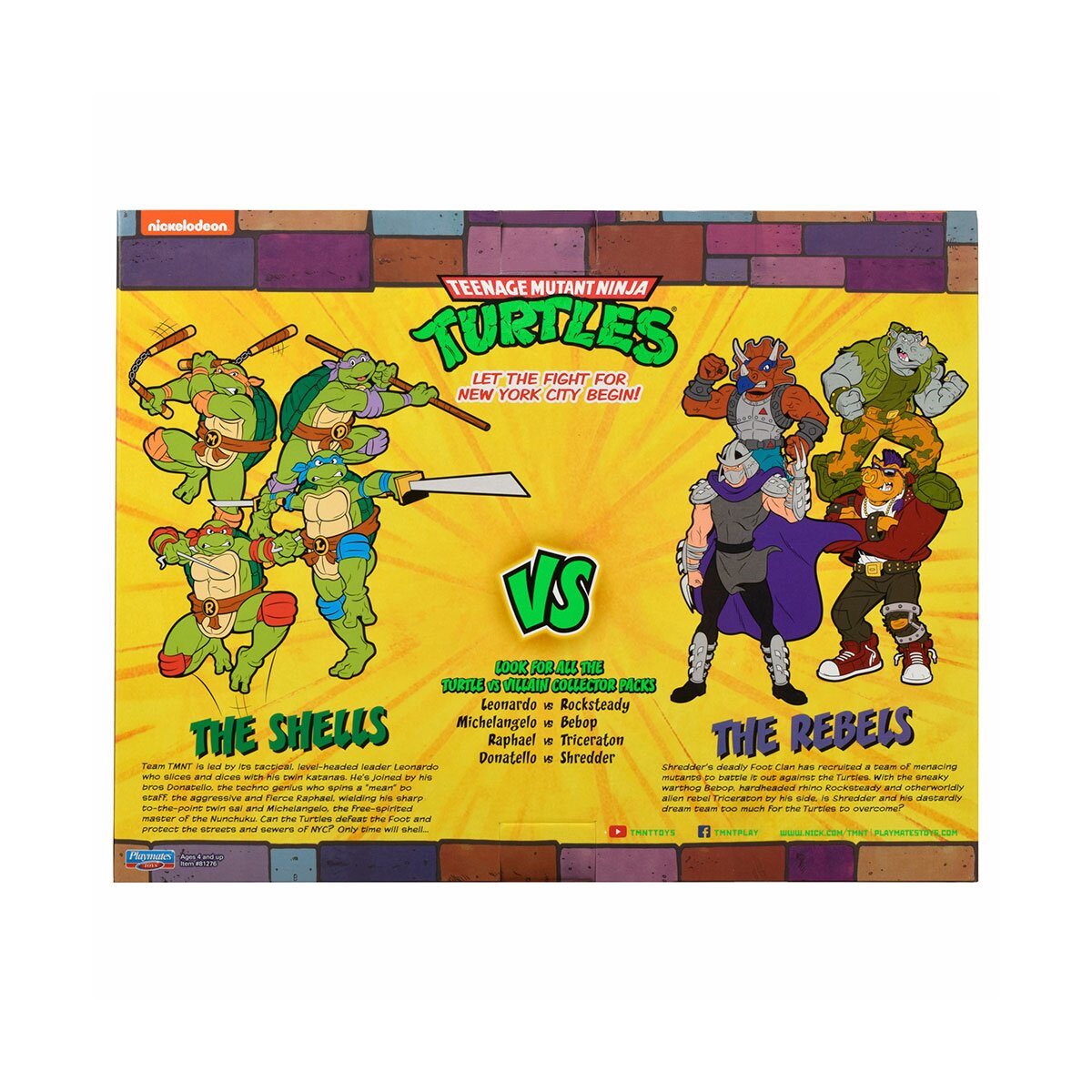 Місто в небезпеці, і на допомогу приходять підготовлені Черепашки Ніндзя, які пройшли суперпідготовку в мистецтві ніндзюцу у свого сенсея щура - майстра Сплінтера. Брати виходять зі свого каналізаційного лігва і протистоять ворожому світу Нью-Йорка. Озброєні до зубів Черепашки переможуть будь-якого монстра, який зустрінеться у них на шляху. Черепашки-ніндзя вже декілька поколінь є улюбленішими героями хлопчиків. Жодна пригода не може обійтися без лиходія-супротивника, в цьому допоможе набір фігурок TMNT Леонардо проти Рокстеді.