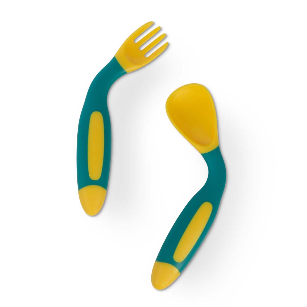 Ручки приладів можуть згинатися під будь-яким кутом і відмінно тримають задану форму, що допоможе дитині легко донести їжу в рот. Спеціальне антиковзне покриття забезпечує зручне захоплення маленькими долоньками дитини.