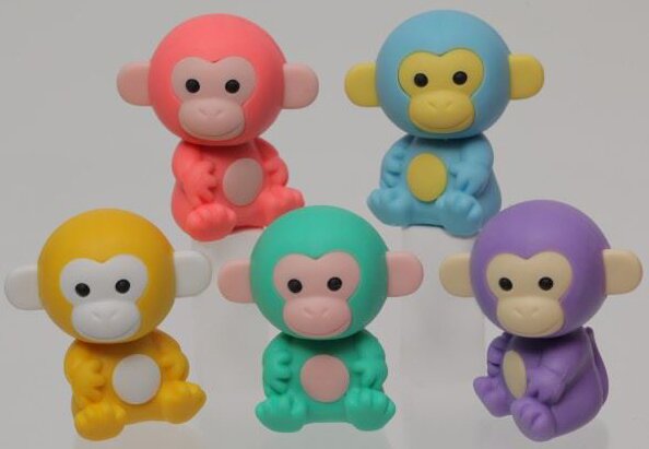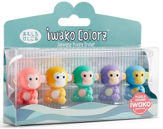 Кумедні фігурні гумки Iwako виготовлені з високоякісного каучуку у вигляді різних мавпочок. Гумки містять вставні елементи, завдяки чому вони можуть використовуватися як навчальна та розвивальна іграшка. Гумка Iwako стане незамінним аксесуаром на столі школяра, студента або офісного працівника.