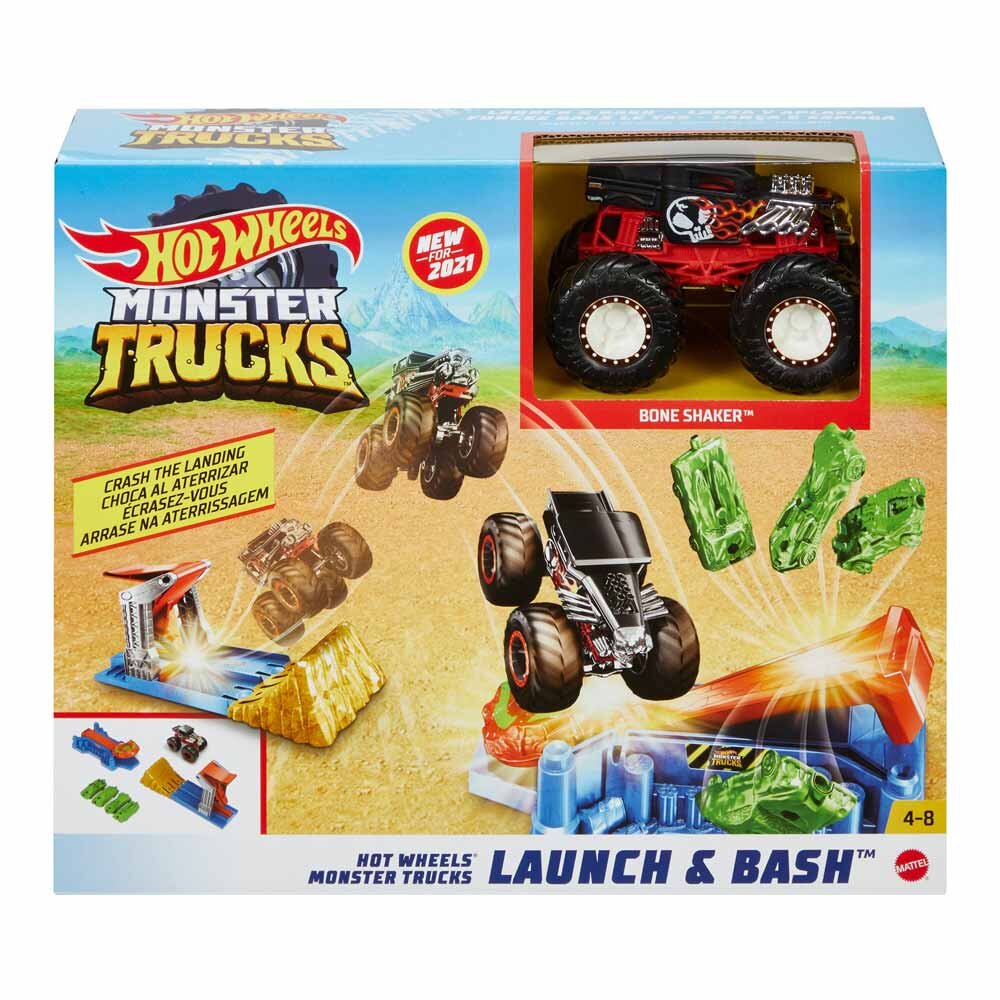 У комплекті: автомобіль; пусковий механізм; трамплін; перешкода; наклейка; машинки для перешкоди. Гра із набором Hot Wheels Monster trucks сприяє розвитку спритності, дрібної моторики, просторового сприйняття, логічного мислення та уяви.