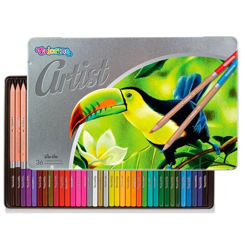 Олівці кольорові в металевій упаковці мают насичені та яскраві відтінки. В упаковці палітра з 36 добре пігментованих олівців високої якості.