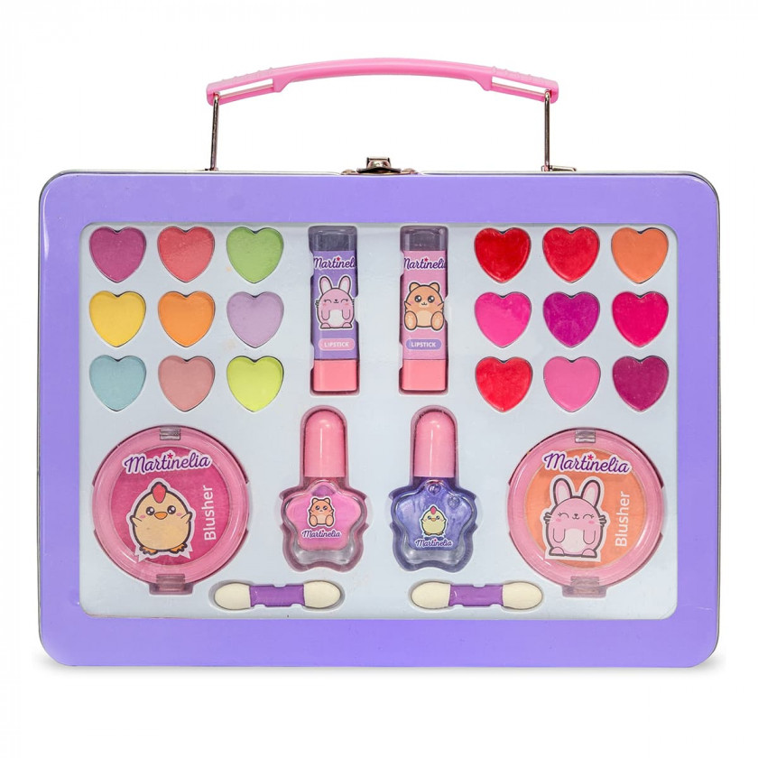 Маленькі модниці з дитинства наслідують мамі, прагнуть спробувати всі засоби з косметички. Фарбувати губи чи нігті – улюблена справа дівчат. Набір косметики Martinelia Complete beauty case 26 ел. подарує маленькій дівчинці свій власний набір косметики у стильній валізці. У кейсі є все необхідне для створення модного образу щодня або для свята. Малятко зможе експериментувати з косметикою, пробувати нові поєднання кольорів, розвиваючи почуття смаку.