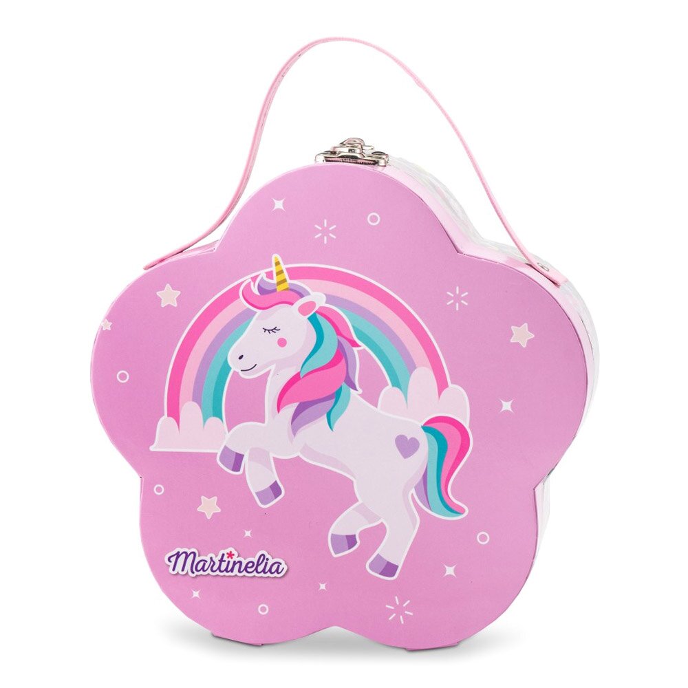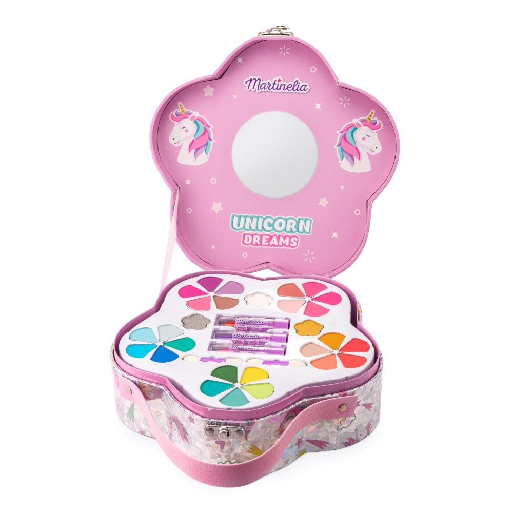 Набір косметики Martinelia Unicorn Кейс flower — найбільш бажаний подарунок для маленької модниці. Дівчинка буде в захваті від різноманіття косметики. Кейс зроблений у формі квітки й оснащений відкидною кришкою, ручкою для транспортування, дзеркалом та надійним замком.
