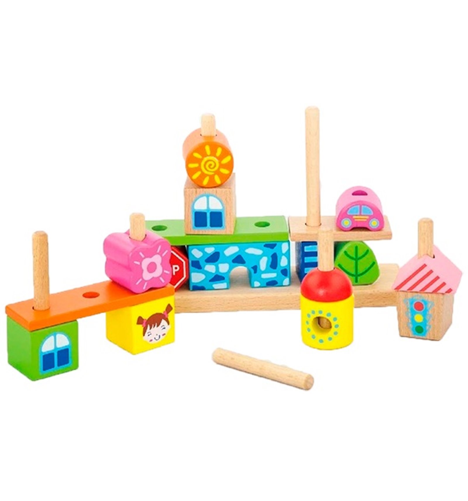 У комплекті 8 осей, 4 платформи і 14 різних блоків, з яких можна створювати іграшкове місто.