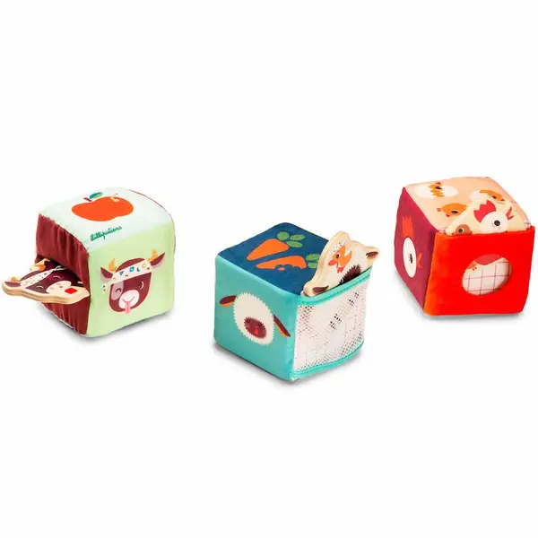 Набір м'яких кубиків Lilliputiens Ферма (83272) - оригінальне, м'яке та інтерактивне джерело навчання для допитливих малюків.