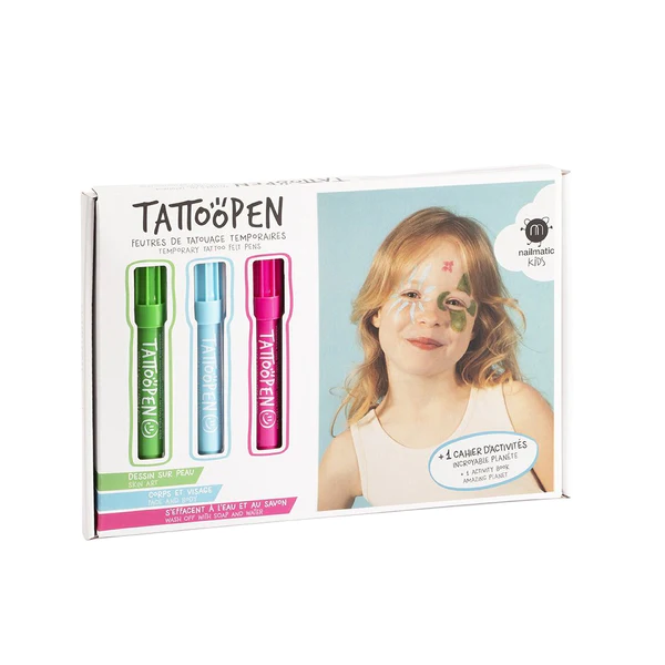 Розвивайте творчі здібності із фломастерами для аквагриму. Ця чудова пригода далеко від екранів телефонів і телевізорів! Nailmatic Tattoopen робить аквагрим неймовірно простим та захоплюючим заняттям. Ці маркери дозволяють створювати тимчасові татуювання.