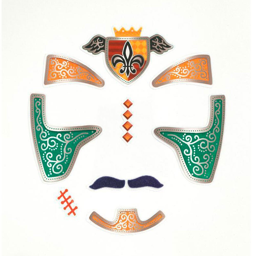 Набір наклейок для обличчя від французського бренду DJECO допоможе створити унікальний образ для тематичної вечірки або шкільного свята. Образ мужнього Короля в обладунках обов'язкового підійде юному герою.
