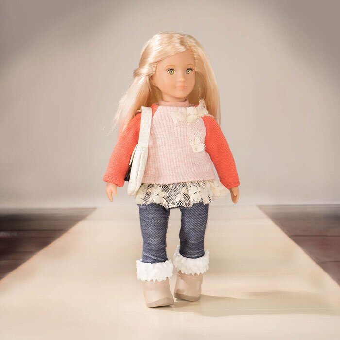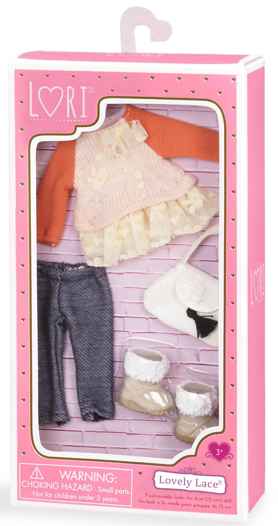 Мереживо – річ, яка ніколи не вийде з моди, адже воно надає будь-якого образу витонченості і ніжності. У наборі одягу від LORI ви знайдете: оригінальний светр з мереживом, легінси, взуття та м'яку сумочку. Цей наряд стане прекрасним доповненням до гардеробу маленької ляльки-модниці. Комплект сумісний з будь-лялькою LORI 15 см. Всі речі виготовлені з якісного текстилю та пластмаси і є абсолютно безпечними для дітей.