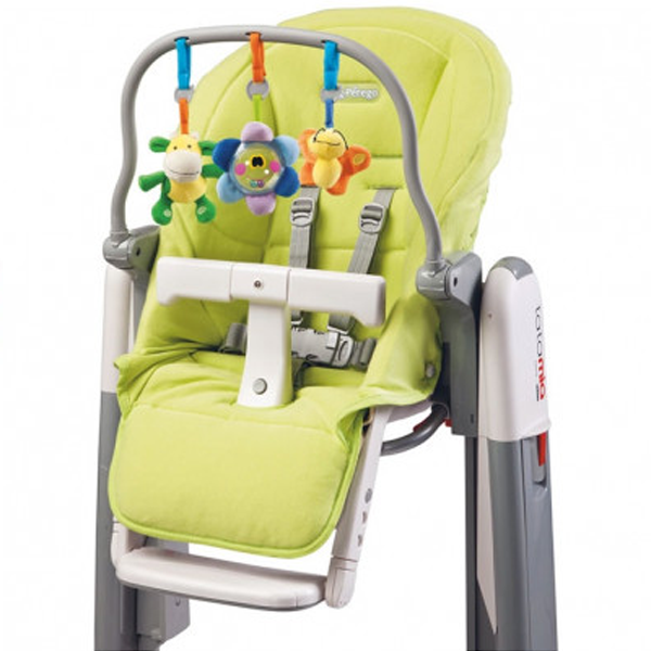 Набір аксесуарів до стільчика для годування Peg-Perego Tatamia поєднує знімний чохол для стільчика й ігрову панель з підвісними іграшками.