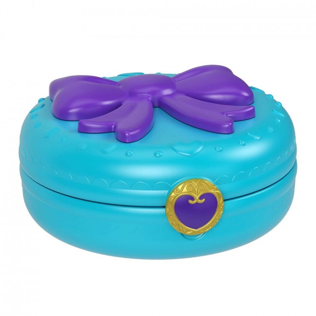 Набір ззовні схожий на кишенькове дзеркальце для макіажу. Але якщо його відкрити, ми потрапляємо у маленький світ Поллі з різними ігровими зонами. Обирай пригоду на тему, що найбільше до вподоби: відпочинок біля басейну, святкування дня народження або вечірка з ночівлею.