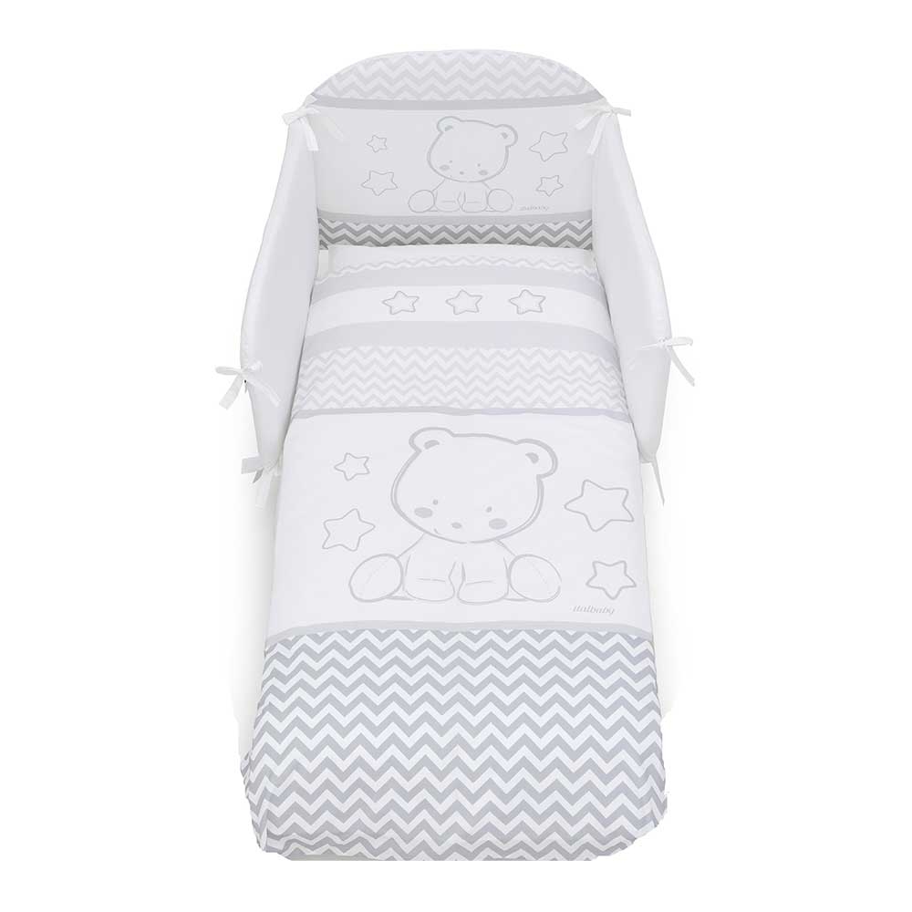 Pop Star Maxi Grey (100.0024-5) - набір постільної білизни для дитячого ліжечка ItalBaby. Включає п'ять предметів. Виготовлений з 100% бавовни. Наповнювач ковдри - синтепон.