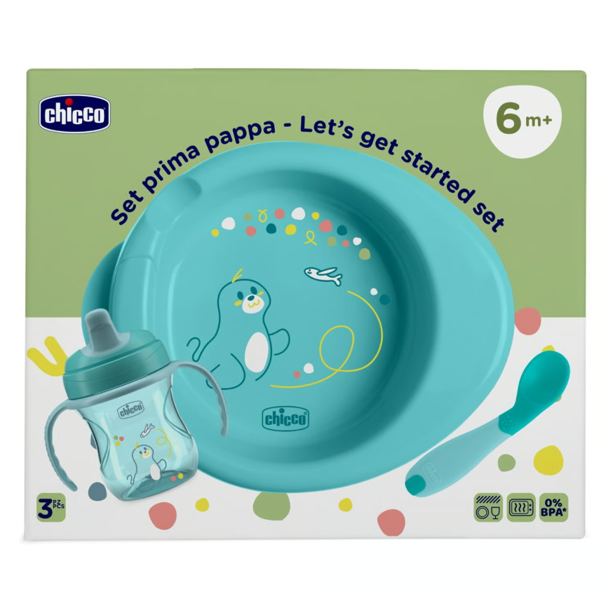 Набір посуду Chicco "Set Prima Pappa" – перший індивідуальний посуд малюка. Містить усе необхідне для введення прикорму та навчання дитини їсти самостійно.