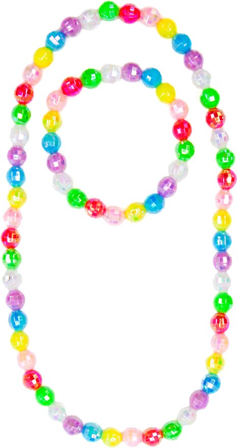 Яскравий набір прикрас Colour Me Rainbow від канадського бренда Great Pretenders додасть барв у життя дитини. Комплект складається з дитячого намиста та браслета. Завдяки різноманітності кольорів набір гармонійно впишеться в будь-який образ юної красуні. За допомогою біжутерії Great Pretenders можна не тільки створювати яскраві образи, а й учитися поєднувати кольори, правильно розставляти акценти.