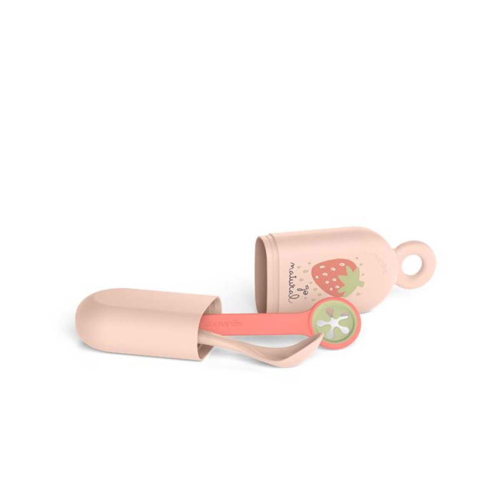 У набір входить ложка ергономічної форми для дитячого харчування, супу та іншої їжі напіврідкої консистенції, а також спеціальний затискач, який перетворить звичайну серветку на слинявчик. Завдяки практичній коробці ви зможете гігієнічно транспортувати ложку та безпечно прибирати її після їжі.