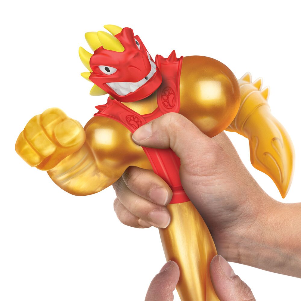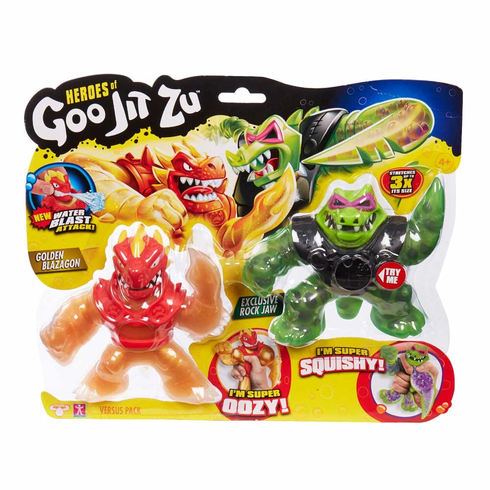 Набір стретч-антистрес Goo Jit Zu Голден Блейзагон і Рок Джо — чудовий подарунок для справжніх пошановувачів фігурок, що тягнуться. Особливість фігурок у тому, що вони набувають завжди первинної форми, навіть після згинань та розтягувань. Герої наповнені гелем та кульками, а в Голден Блейзагона є рука-меч та функція «Атака вибухом води». Антистрес може розтягуватися в 3 рази більше. Виготовлено з неймовірно міцної гуми.