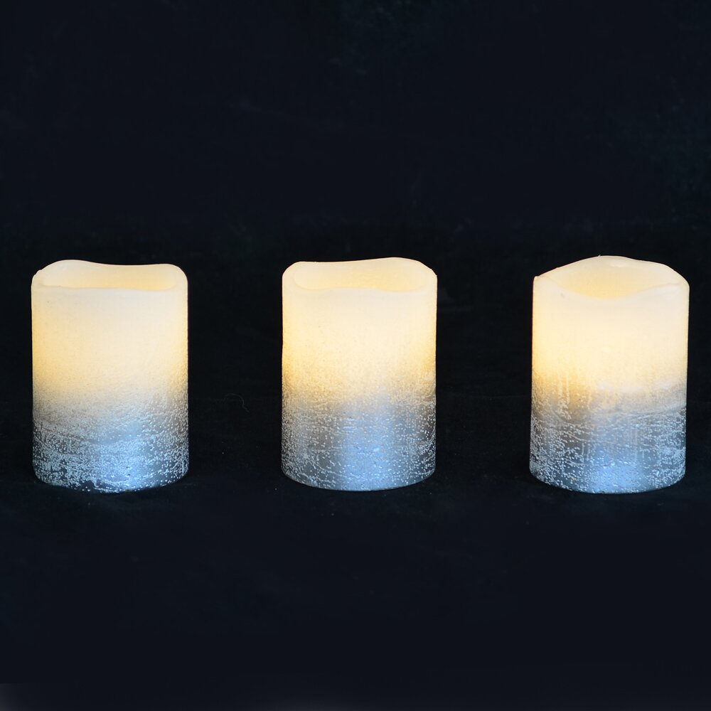 Набір світлодіодних свічок, декорованих сріблом, використовується для створення атмосфери тепла і затишку в період новорічних і різдвяних свят. Кількість свічок в наборі: 3 шт.