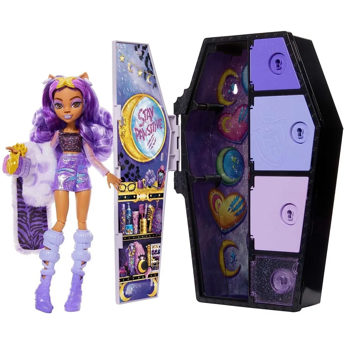 Відкрийте найбільший відсік. Усередині ховається неперевершена Клодін. Лялька одягнена у відпадне вбрання - кофту перевертня з прозорими рукавами, блискучі бузкові шорти та високі чоботи з оригінальним дизайном. А що заховано в інших шафках? Так хочеться дізнатися. Для цього знадобиться ключ. Зануріть його в теплу воду і спостерігайте за ефектом "Кольорового перетворення". Тепер ключ такого ж кольору, як і дверцята, які можна їм відкрити. А всередині знову фантастичні подарунки та наступний ключ. Повторюйте гру з перевтіленням, доки не будуть відкриті всі відсіки та знайдено всі сюрпризи. Переодягніть монстро-ученицю і прикрасьте її всіма аксесуарами. Образ буде вбивчо-модний, витриманий в унікальному стилі перевертня. Після розпакування шафу можна використовувати в сюжетних іграх, а також для зберігання ляльки Клодін з усіма її речами.
