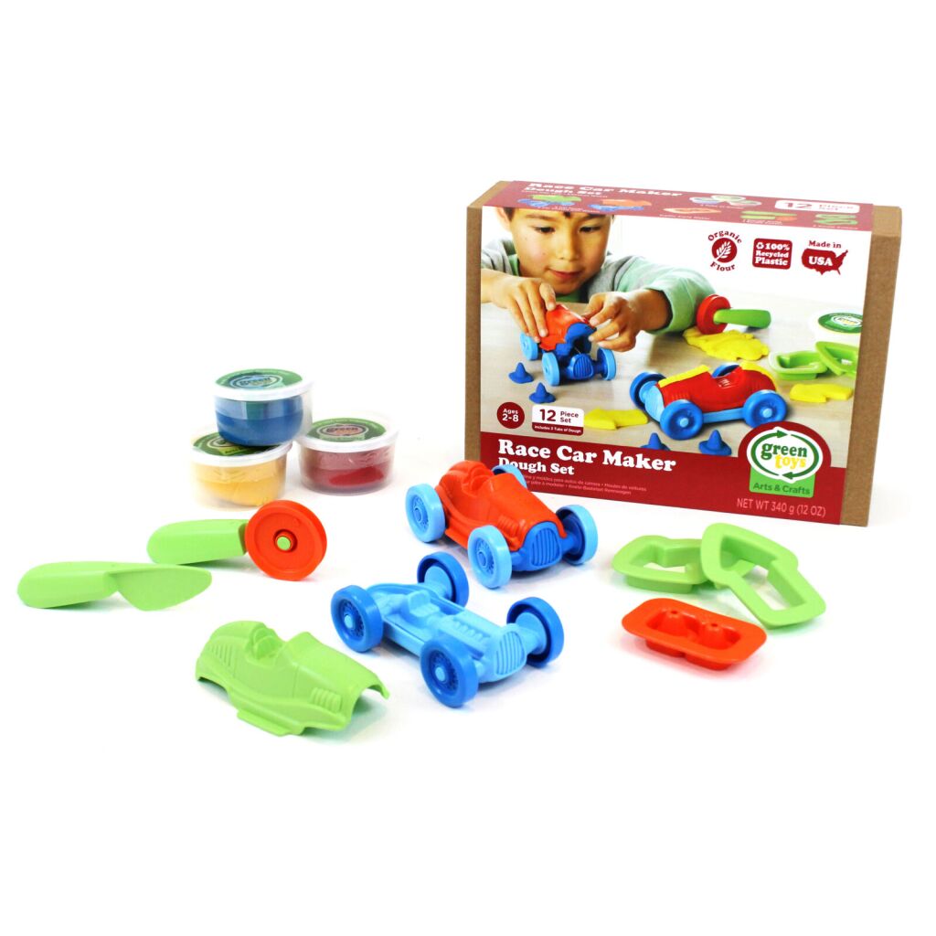 Набір тіста для ліплення Green Toys з 12 предметів включає все необхідне для створення нестандартних дизайнів автомобілів: