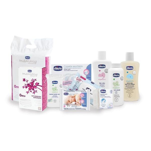 Набір в пологовий будинок Chicco складається тільки з найнеобхідніших речей для мами і дитини в пологовому будинку. У набір входить захисний тальк Baby Moments, який запобігає почервонінню, подразненню і попрілості в делікатних місцях на шкірі дитини, завдяки абсорбуючі властивостями рисового крохмалю. А лосьйон Baby Moments ідеальний для щоденного догляду за ніжною шкірою дитини з народження, завдяки мигдальному молочку. Бавовняні серветки акуратно видалять забруднення з шкіри дитини, ніжно піклуючись про неї. Емульсія призначена для щоденного догляду за шкірою і волоссям навіть немовля, завдяки екстракту вівса і нейтральному pH.