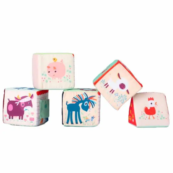Набір із 5 м'яких кубиків Lilliputiens Ферма (83455) - оригінальне, м'яке та інтерактивне джерело навчання для допитливих малюків.