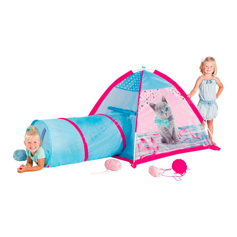Намет Micasa "Кошеня" з тунелем (413-16) має барвистий дизайн, який обов'язково сподобається дитині. На наметі зображене миле кошеня. Намет – це затишне містечко, де дитина зможе усамітнитися зі своїми іграшками або друзями. Саме тут будуть виникати божевільні ідеї по захопленню печива або цукерок. Стінки і дно намету виготовлені з водовідштовхувальних матеріалів. Для того щоб потрапити в намет необхідно подолати довгий тунель.