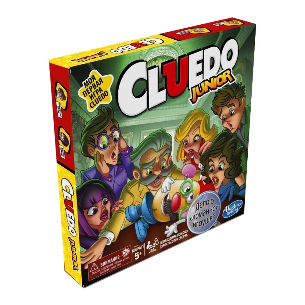 Гра Клуедо Юніор від бренду Hasbro Gaming – захоплююча детективна гра для 2-4 гравців. Настільна гра виготовлена з якісних міцних сертифікованих матеріалів (пластик, целюлоза). Суть гри: Гравцям потрібно з'ясувати, яка іграшка зламана, і хто це зробив; Кинути кубик і пересунути фігурку; Заглянути під фішки меблів, під інші фігурки; Відзначати в блокноті знайдені артефакти; Перемагає той, хто правильно першим викриє злочинця.