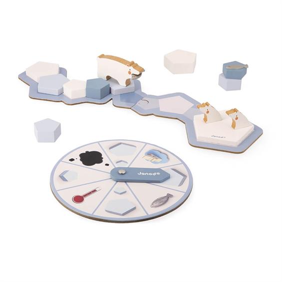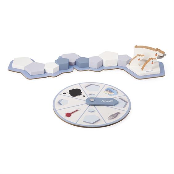 У цю настільну гру, яка призначена для дітей віком від 4 років, грають за допомогою колеса, яке входить у комплект. Кожен гравець обертає колесо. Стрілка вказал на лід? Покладіть "шматок льоду" перед ведмедем, який може просунутися на одну клітинку вперед. Риба? Зберіть рибу, яку ведмідь зможе віднести своїм дитинчатам. Термометр? О ні, лід тане: приберіть "лід", і ведмідь повертається на один крок назад. Розлив нафти? Не пощастило: приберіть "лід", і ведмідь повинен відійти на один крок назад. Ведмідь у воді? Гра повертається до початку.