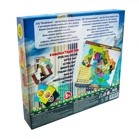 Поєднати гру з пізнанням і навчанням, розважити малюка допоможе настільна гра з елементами економіки «Мандрівник» від Strateg. На малюків чекає захоплива подорож містами й просторами України, знайомство з їхніми пам'ятками, і все це в доступній ігровій формі. Гравцям доведеться подолати перешкоди та виконати різні завдання, роблячи за чергою ходи, відповідно до правил і очок, що випали на кубику.