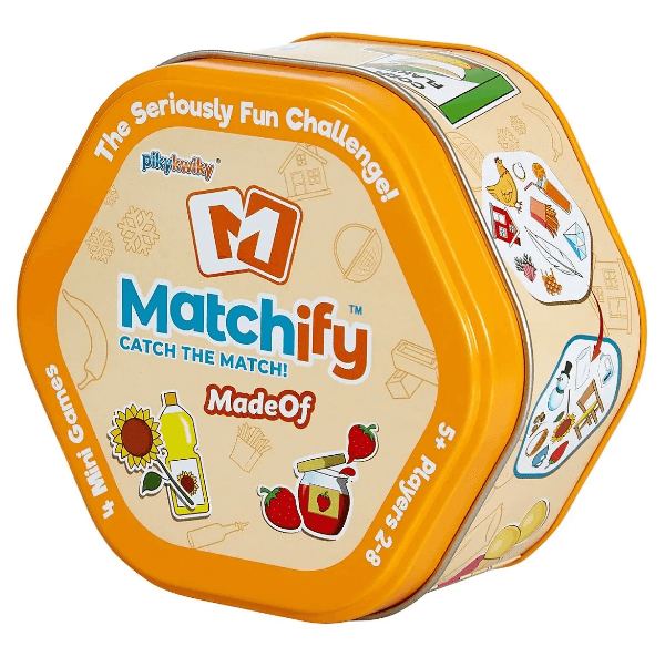 З чого зроблені хлопчики? З чого зроблені дівчата? А з чого зроблений кетчуп? "Matchify MadeOf" - гра про складові, компоненти та їх зв'язок. Дивись на картки - символ "багет" пов’язаний із символом "пшениця". Якщо ти побачив зв'язок, то голосно кажи: "Багет - пшениця". Звучить легко, чи не так?