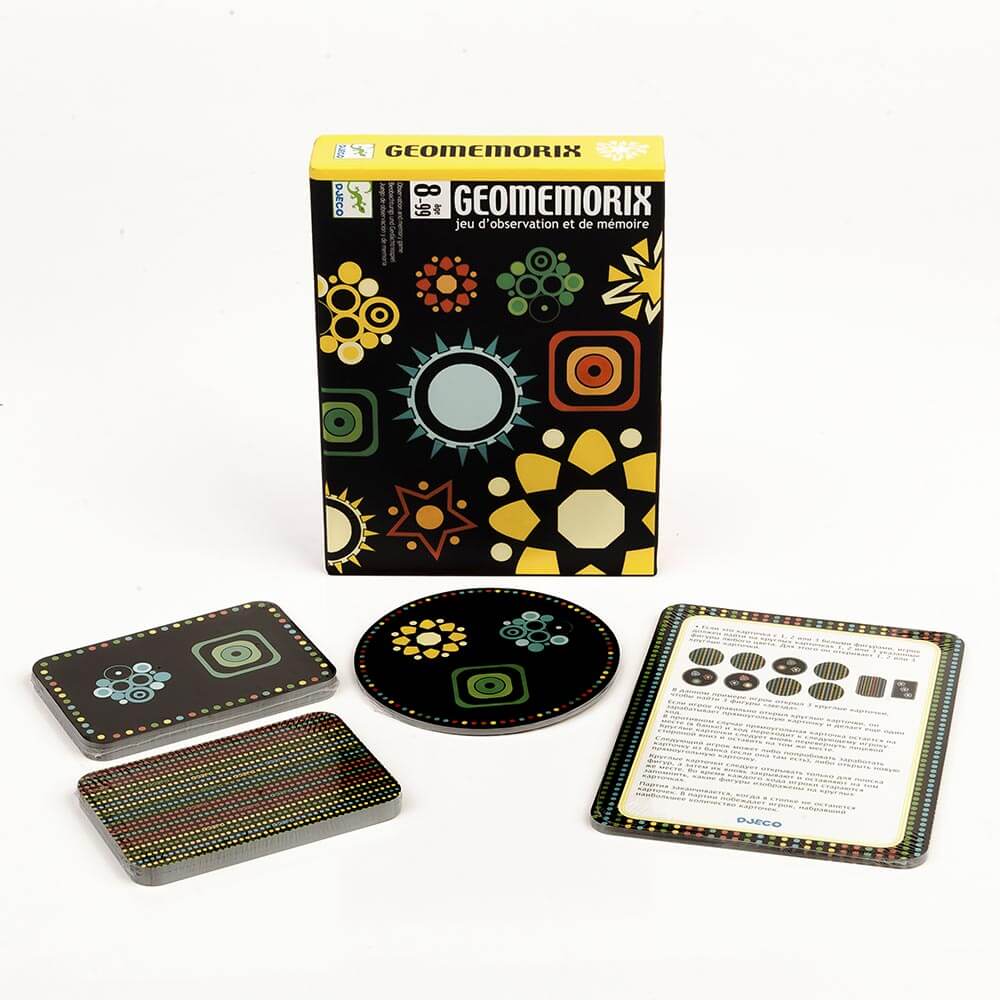 Карткова гра Geomemorix від відомого бренду DJECO. Подарунок, який буде цікавий не тільки дітям. Ця гра буде незамінною на дозвіллі і в подорожах.