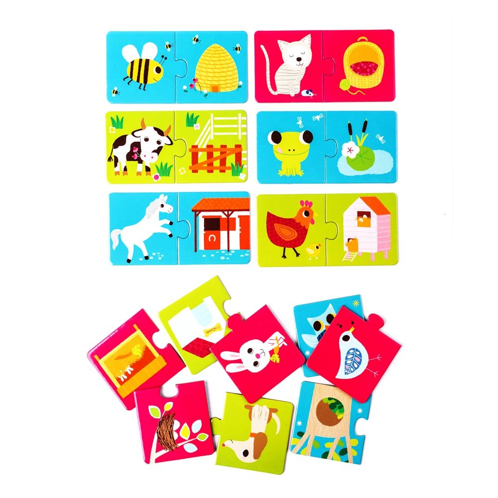 Розвиваюча гра "Хто, де живе?" відкриє всі секрети тваринного світу. Малюк дізнається в якому будиночку живе кожен звір. Щоб визначити відповідності, картинки потрібно з'єднати між собою як звичайний пазл. Вашій непосиді сподобається з'єднувати барвисті картинки з оригінальними зображеннями тваринами. Про кожного персонажа можна скласти цікаві історії. Перша дитяча головоломка допоможе розвинути логічне мислення, дрібну моторику, а також подарує нові знання про тварин. Відповідності "тварина-дім" збагатять кругозір малюка, викличать інтерес до цієї теми. Гра упакована в красиву коробку, що прекрасно підійде для подарунка дитині.