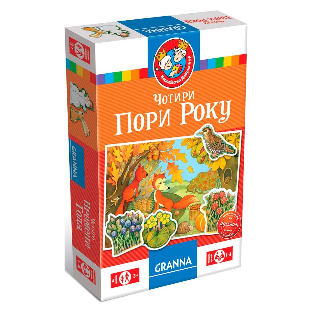 Чотири пори року - пізнавальна гра, в якій діти можуть отримати і закріпити знання про пори року. 4 дошки із зображенням весни, зими, літа і осені допоможуть гравцям вигадувати по сюжету картинки невеликі розповіді, загадувати загадки, знаходити відповіді на питання і навіть розповідати про прикмети. Маленькі символи кожної пори (зайчик, сніговичок, квітуча ягода) допоможуть гравцям правильно відгадувати загадки і знаходити ознаки кожної пори року.