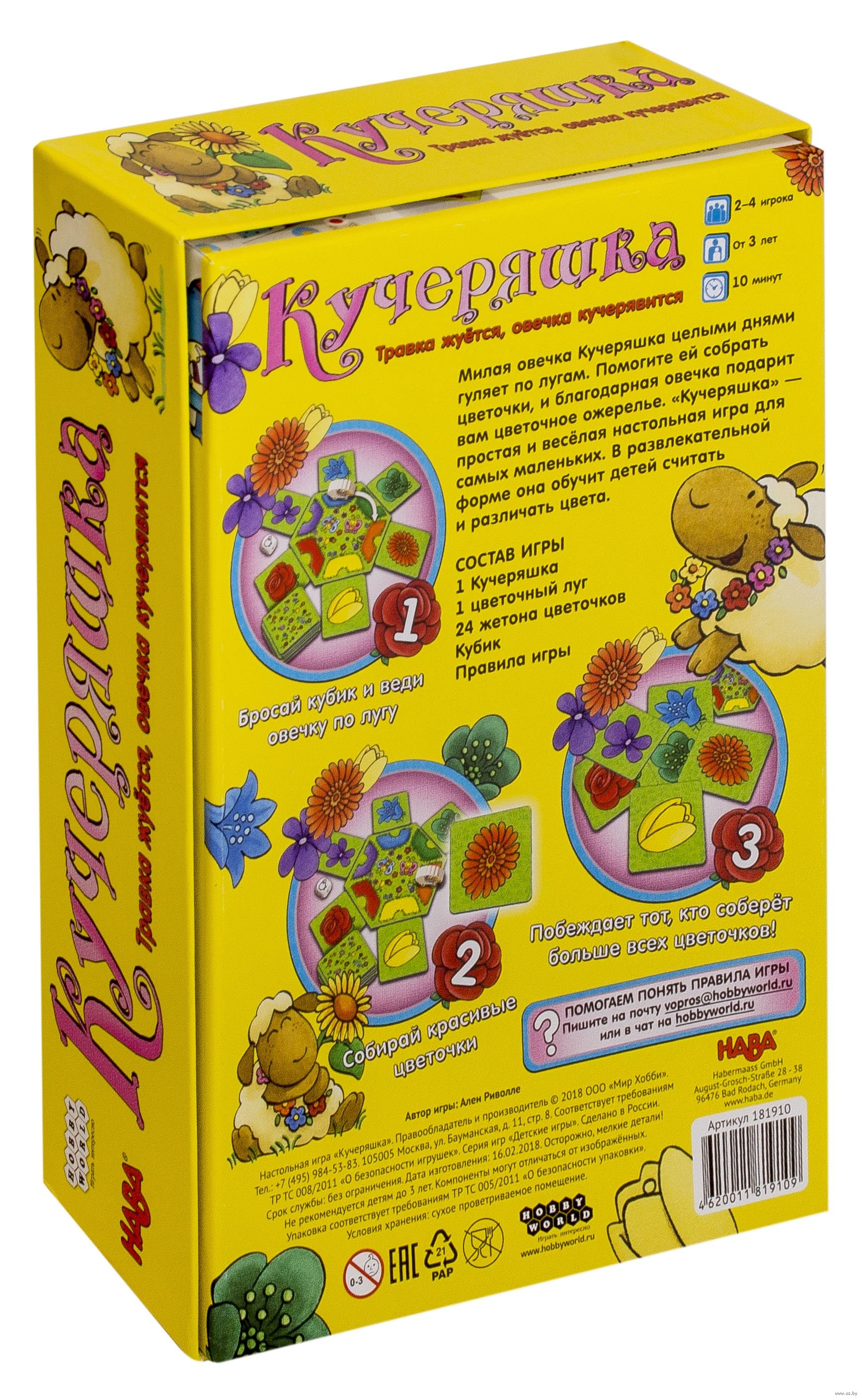 Овечка Кучеряшка цілими днями гуляє по траві. Допоможіть їй зібрати квіточки, і вдячна овечка подарує вам квіткове намисто. Кучеряшка - проста і весела настільна гра для самих маленьких. У розважальній формі вона навчить дітей рахувати і розрізняти кольори.