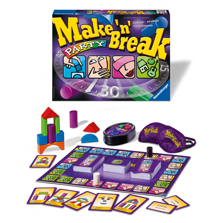 • Настільна гра Ravensburger MAKE 'N' SNOW PARTY (26612) надає можливість дитині проявити свої навики будівельника, які він набув за всі свої роки життя. Будувати з кубиків і не ламати! Тут потрібно проявити спритність рук, кмітливість і винахідливість. Особливо коли побудувати споруду необхідно за певну кількість часу. Граючи в гру MAKE 'N' SNOW PARTY необхідно побудувати за відведений час споруди, які намальовані на картках. Час відстежує хранитель часу. Після того, як кожен учасник гри побуде в ролі будівельника п'ять разів, гра закінчується і починається підрахунок балів. І як Ви здогадалися, хто набрав найбільше балів, той і переміг.